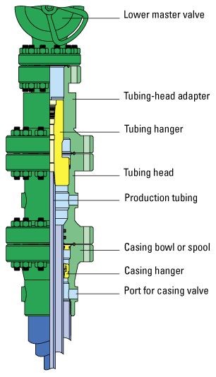 The wellhead is a critical component of an oil or gas well, and it serves as the interface between the wellbore and the surface equipment. It's located at the top of the well casing or tubing, and its primary functions are containment, control, and monitoring of fluids and pressures in the well. Here are the key elements and functions of a wellhead: